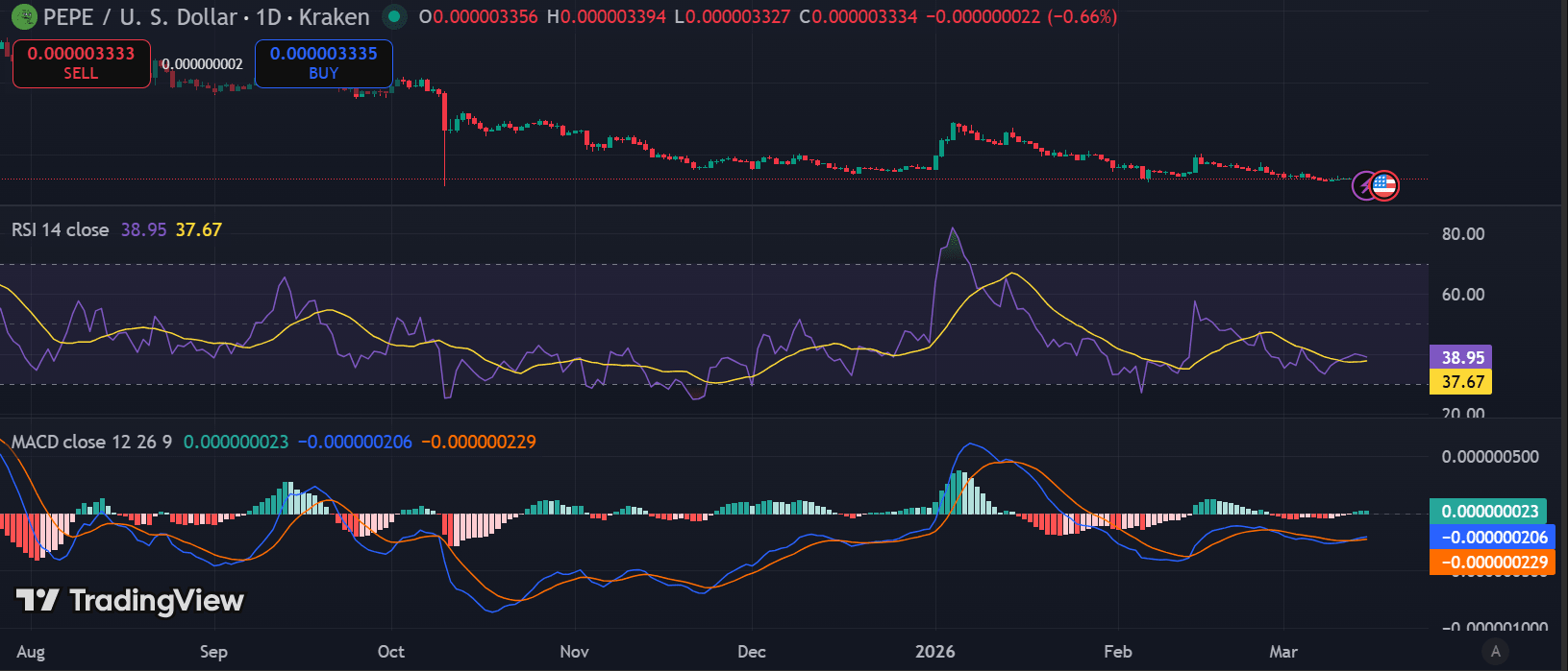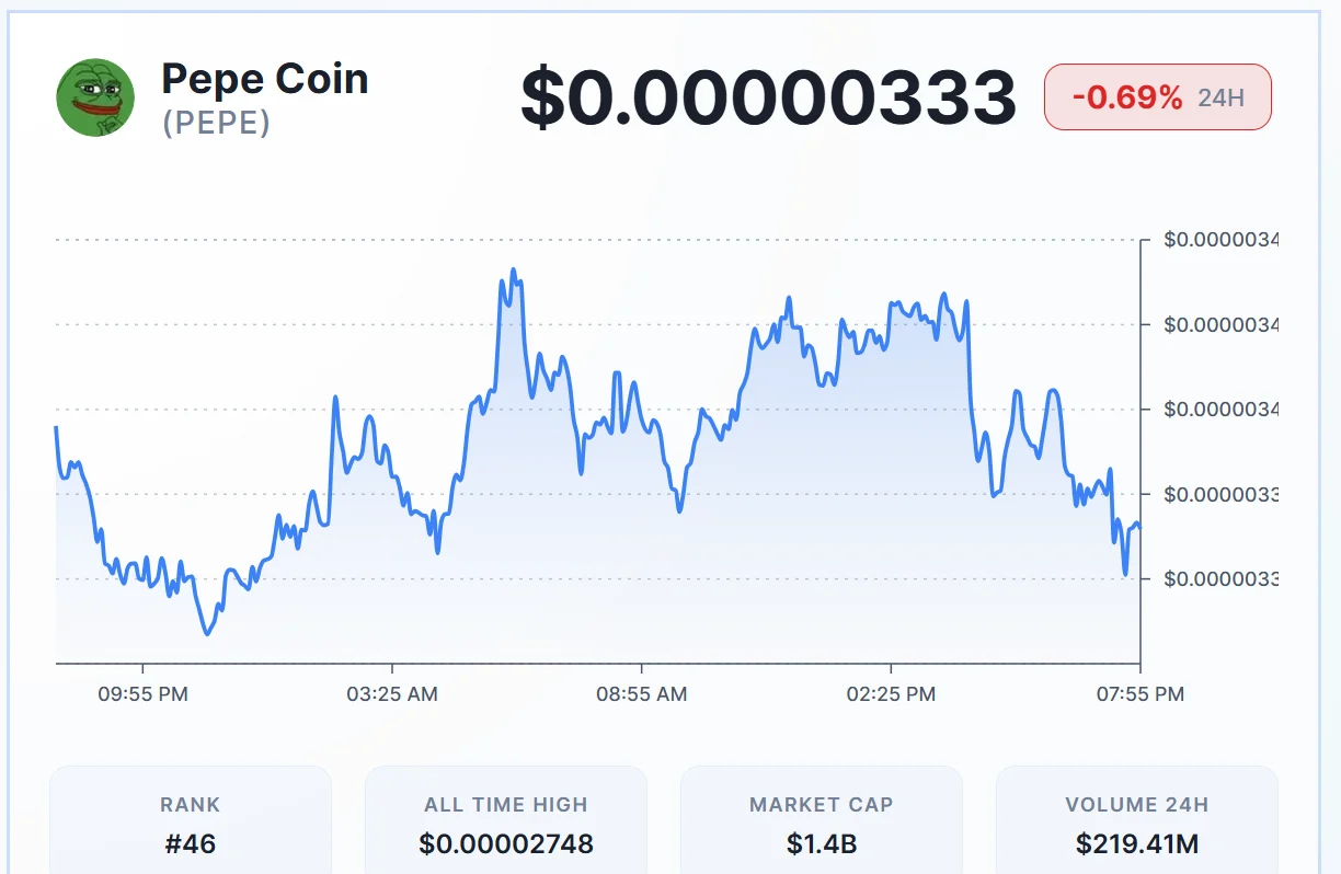 $PEPE Price Holds Key Support Near $0.00000327 as Bearish Momentum Weakens
