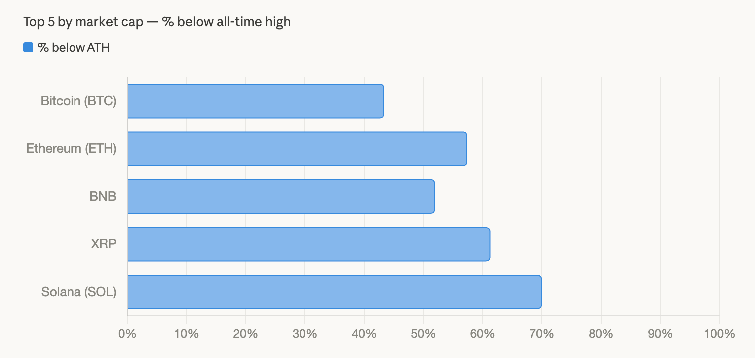 Bitcoin Over 40% Below Record as Crypto Economy Faces Broad Sell-off Across Major Assets