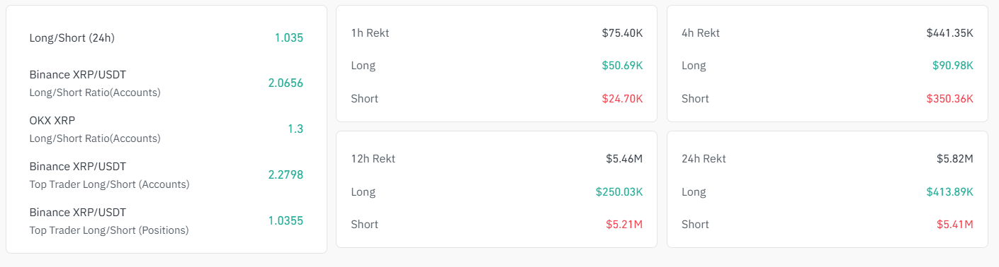 At the same time, the increase in short liquidations shows that some traders who had bet on further downside are now being forced to close their positions as $XRP’s price moves upward.