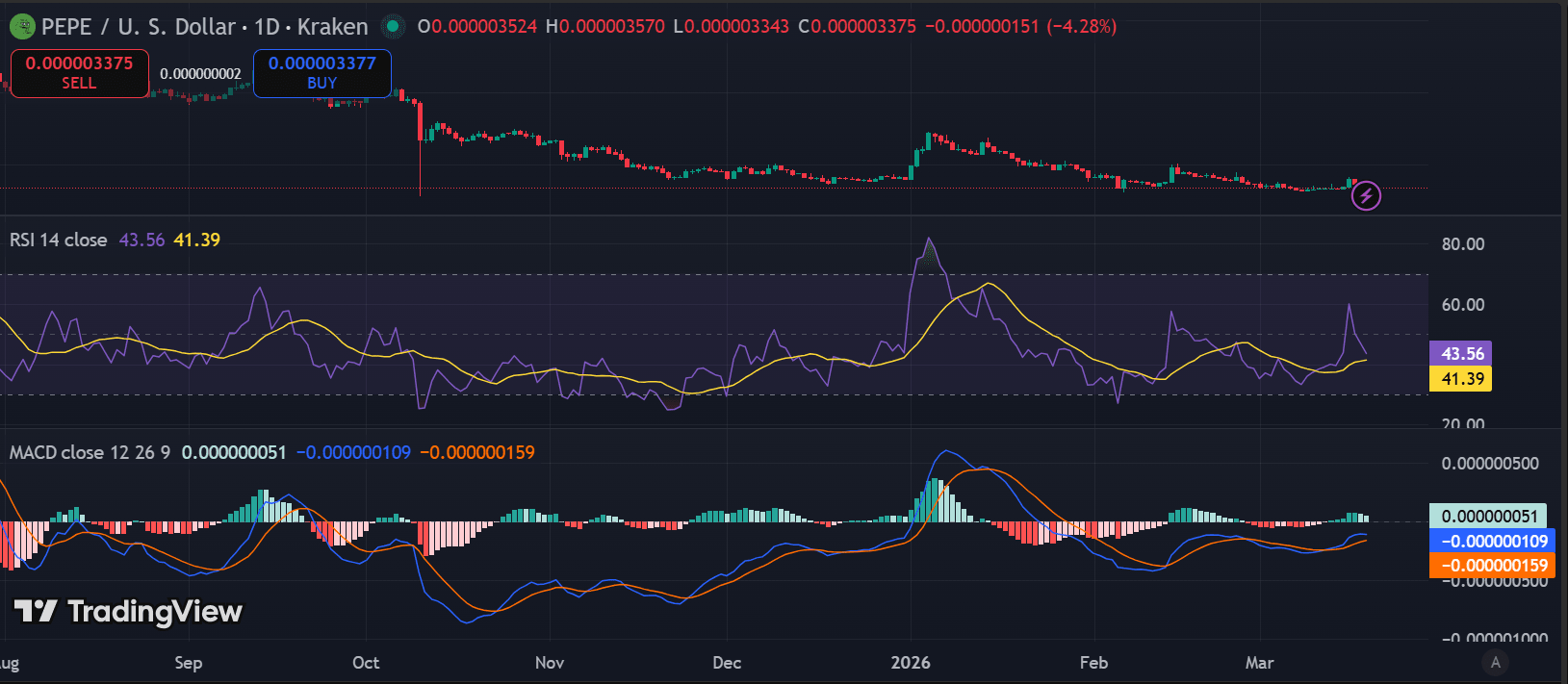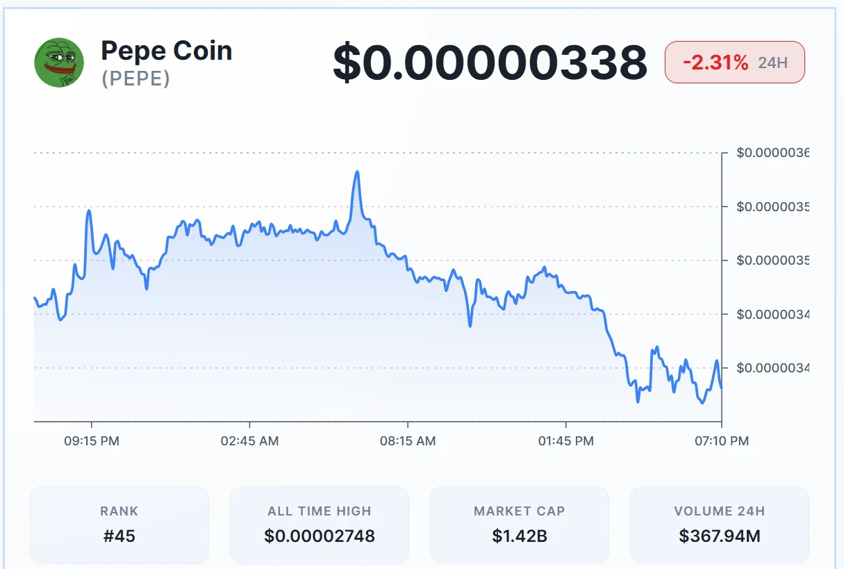 Pepe Stabilizes Near $0.00000337 as Bearish Momentum Weakens