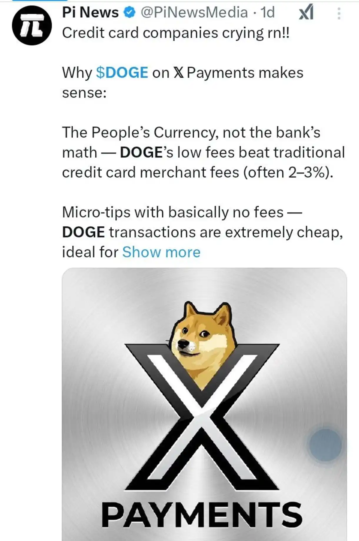 Elon Musk has repeatedly hinted at $DOGE’s potential role in X’s payments ecosystem. Its low fees, fast settlement, and strong retail community make it well-suited for tipping, microtransactions, and in-app payments.