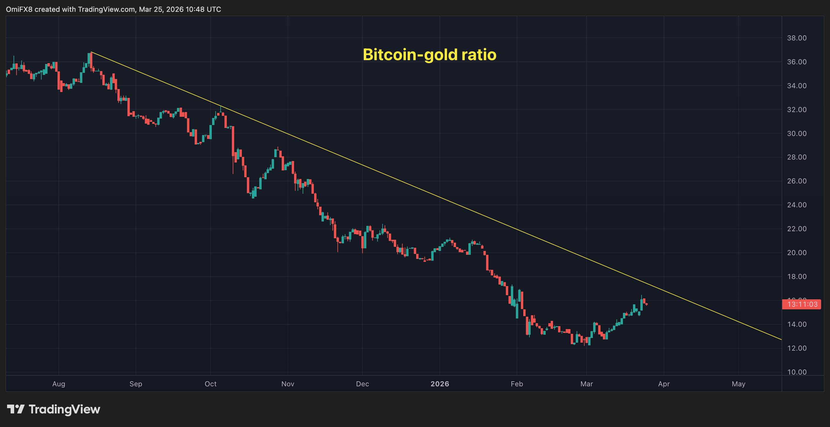- However, the broader bitcoin bear market is still intact and the ratio had yet to top the trendline representing the slide since August 2025.