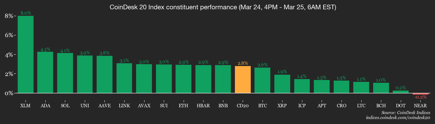 - CoinDesk 20 is up 2.73% at 2,065.01 (24hrs: +0.93%)