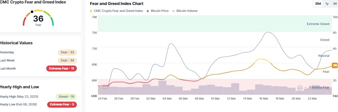 However, the index has surged from 11/100 on February 24, 2026, a period of extreme fear, suggesting growing confidence in a bullish reversal.