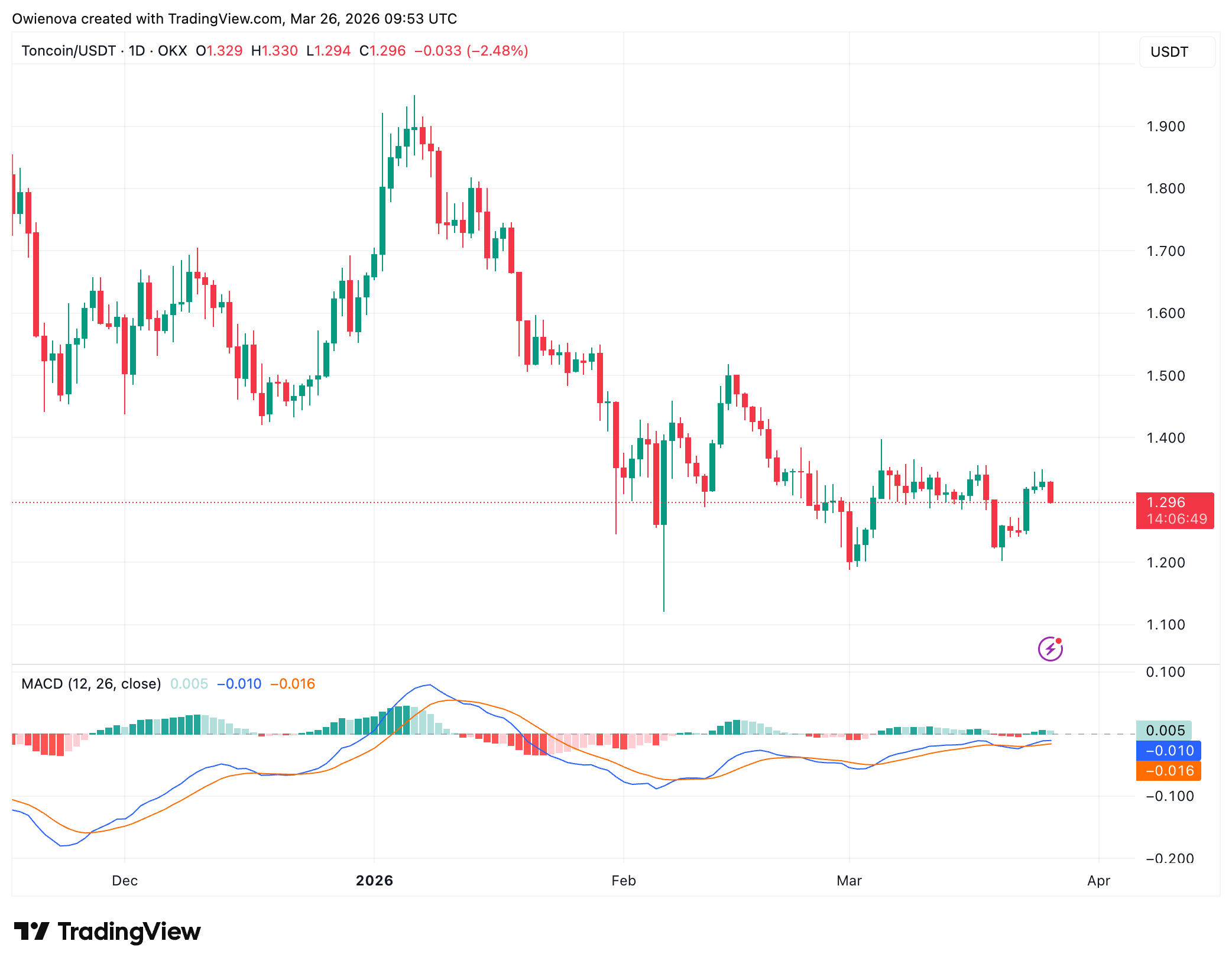 From here, two scenarios are possible. If the $BTC pair closes convincingly above the 200 SMA, it would likely trigger a range flip on Toncoin’s $USDT pair to the upside. Conversely, if the $BTC pair gets rejected at the 200 SMA, the range may break down, putting Toncoin at risk of forming a lower low below $1. Such a breakdown would shift the market structure into bearish territory and could accelerate selling pressure, making $1 a crucial level to watch.