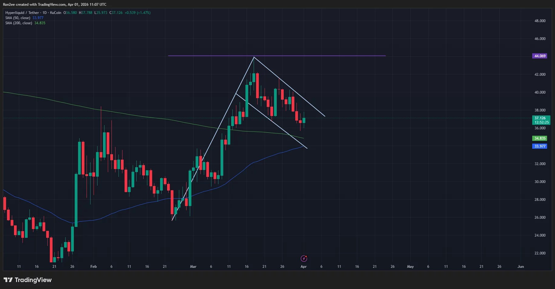 Hence, if a golden cross is confirmed, Hyperliquid price would likely confirm the bullish flag pattern, which would propel it toward the upside of $44, the highest point of the flag formation. A breakout above it could set the stage for a push toward new all-time highs.