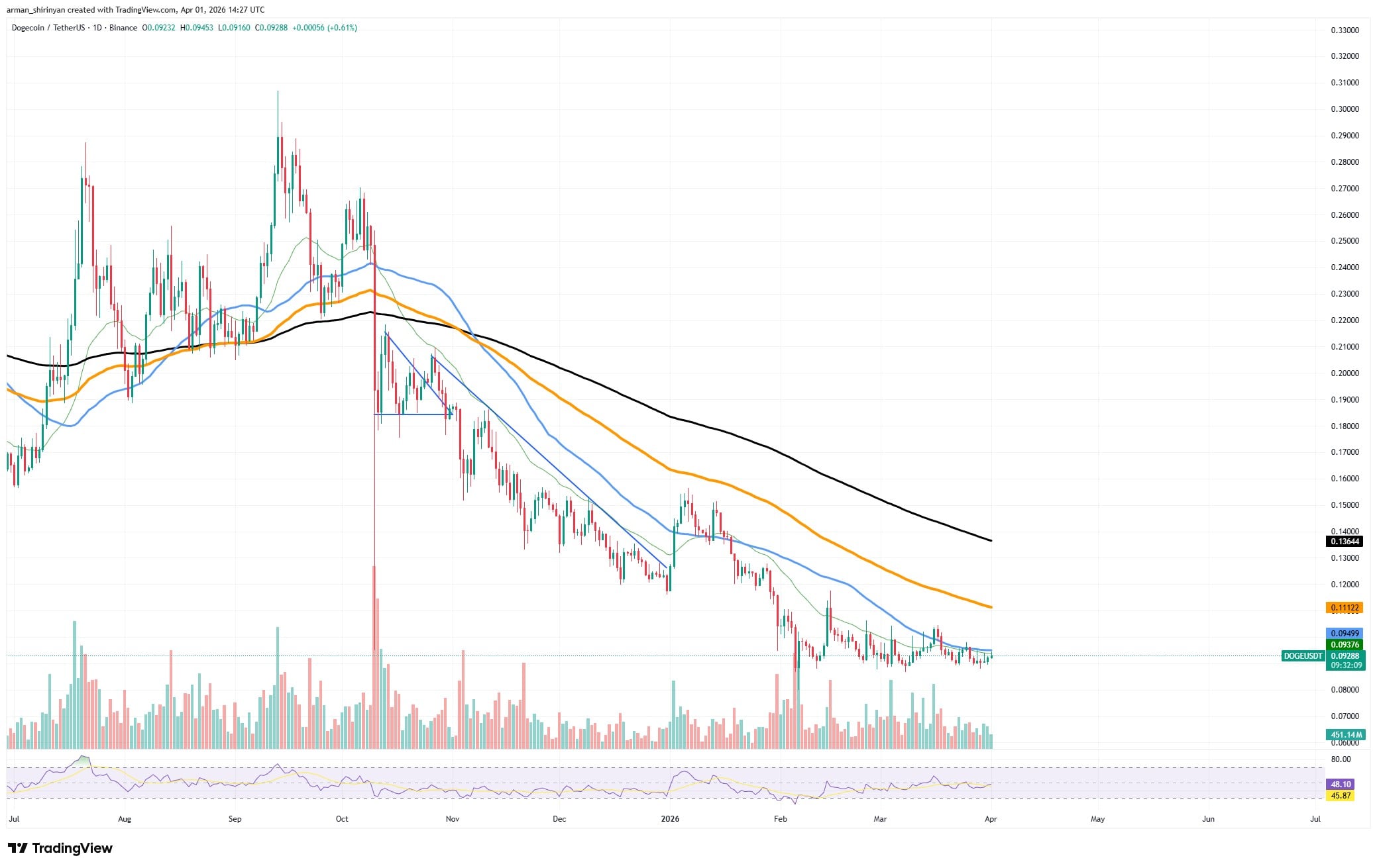 Above all, the supply structure remains unchanged. Dogecoin continues to be inflationary, and upward pressure is difficult to develop in the absence of consistent demand growth. Large, sustained price expansions are therefore more difficult to accomplish than in previous cycles.