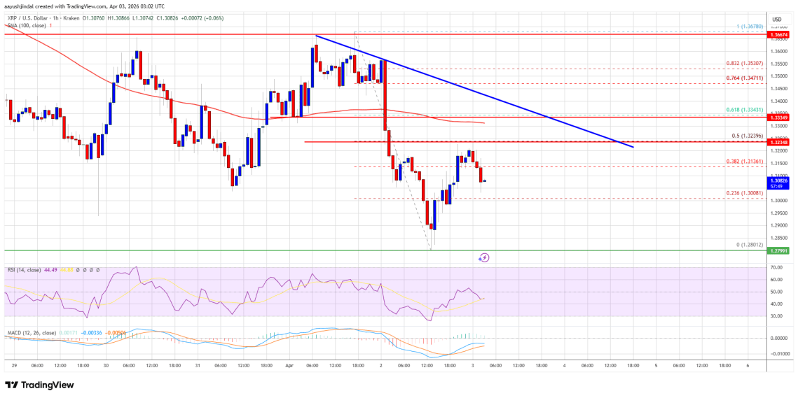 $XRP price extended losses and traded below $1.30. The price is now consolidating losses and faces hurdles near $1.3240 and $1.3340.