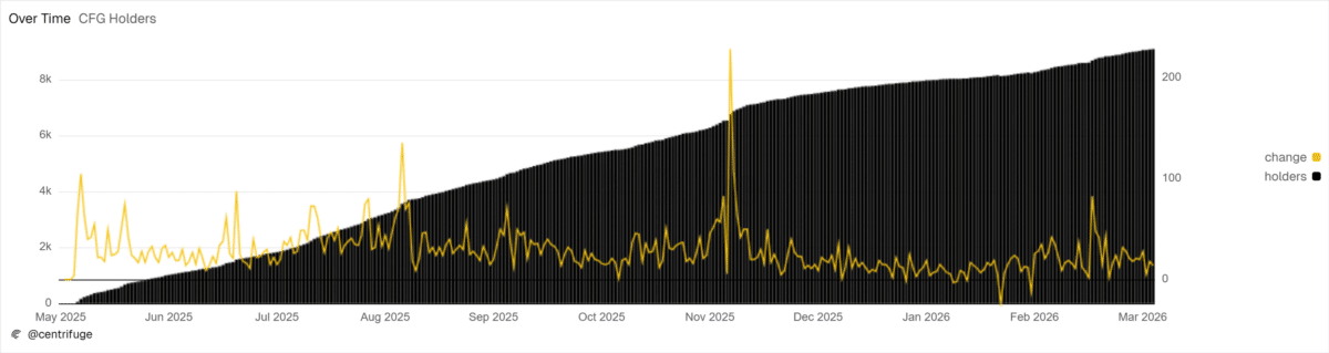 Dune Analytics recorded a total of 19,699 unique addresses interacting with $CFG. Moreover, holders were growing steadily day by day since May 2025.