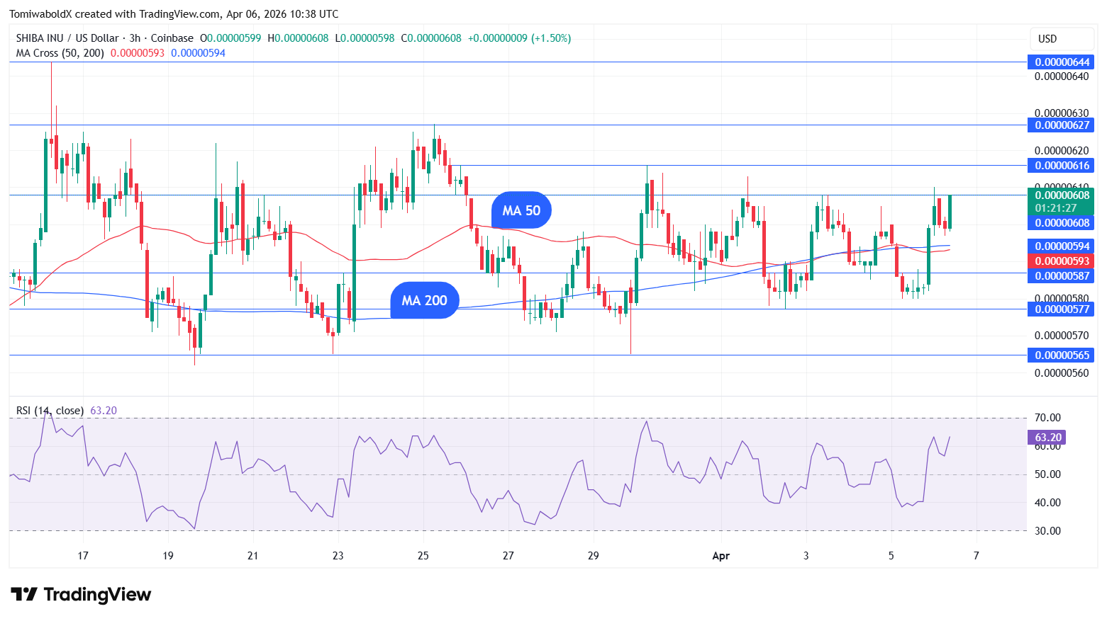 At the time of writing, Shiba Inu was up nearly 5% in the last 24 hours to $0.000006053.