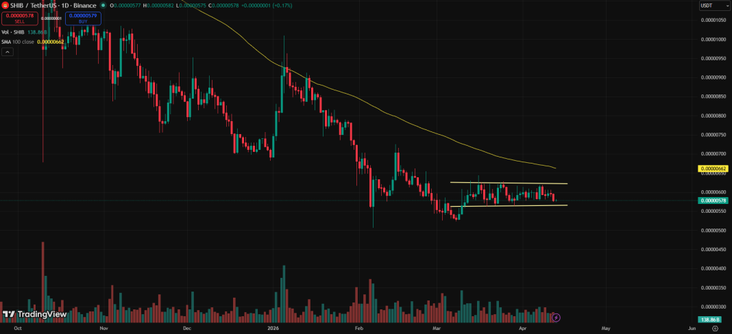 Meanwhile, despite the downturn, $SHIB remains within parallel channel that started forming on March 11. This channel has served as both support and resistance for the token as it shuffles between the upper and lower price ranges.