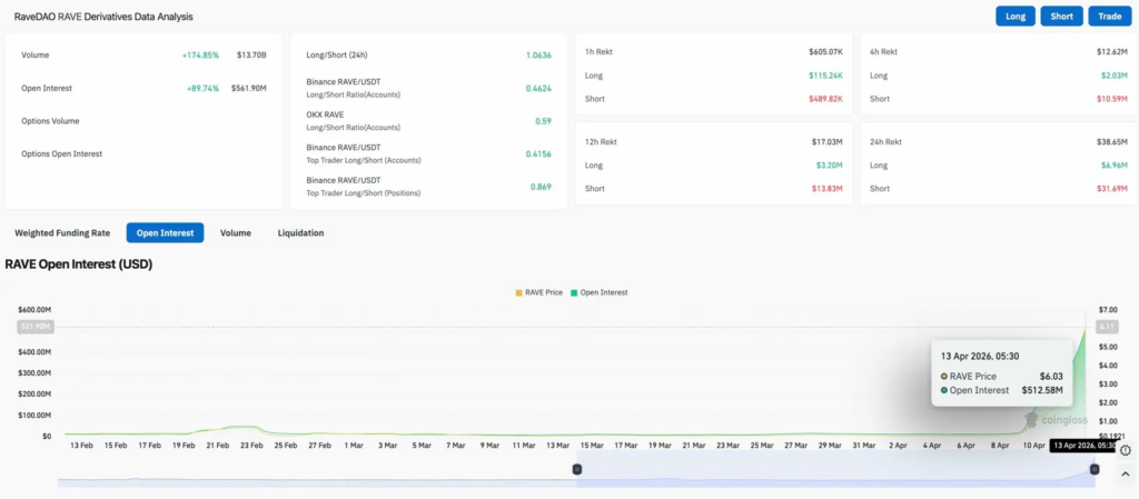 $RAVE Derivatives: Shorts Absorbing Massive Pain As OI Explodes To $561M