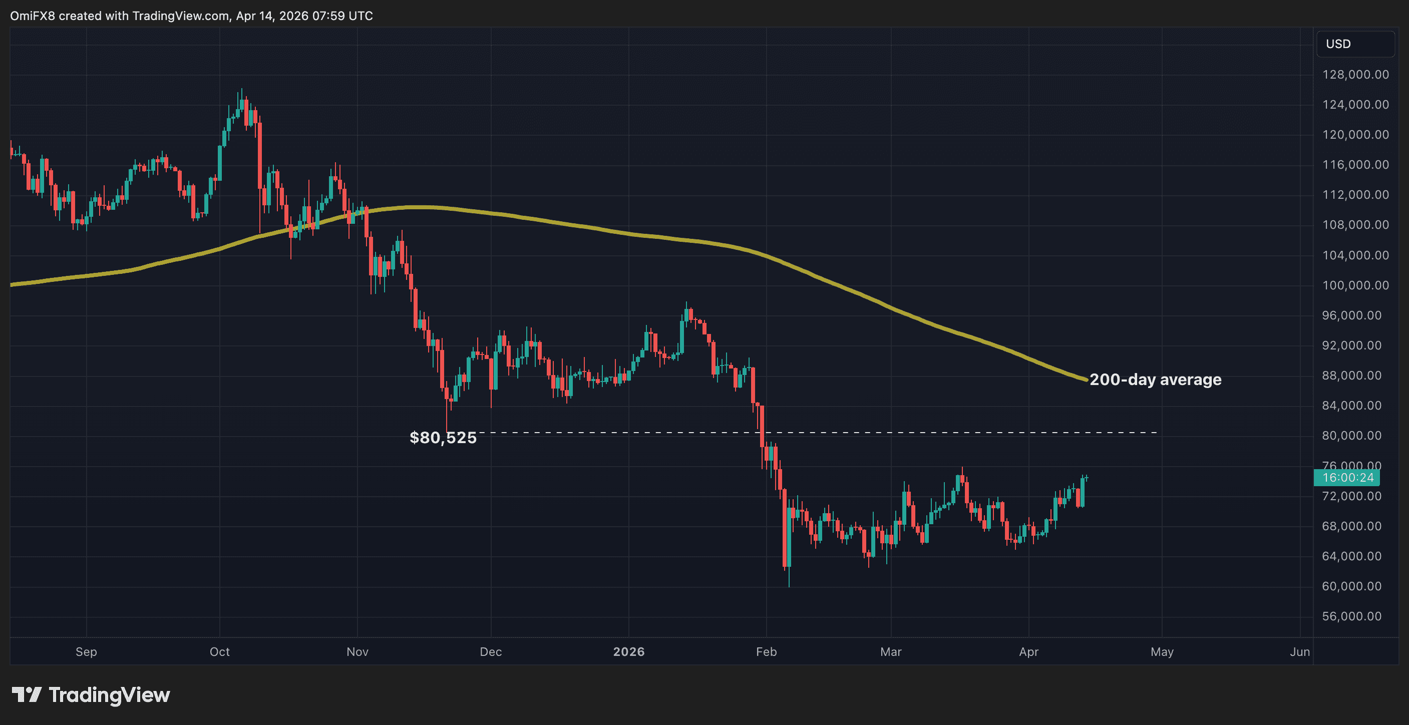 Meanwhile, $80,525 also stands out as a historically important level, marking the point where the November sell-off lost momentum. From there, selling pressure faded and the market transitioned into a two-month recovery rally that carried bitcoin toward the $100,000 area.
