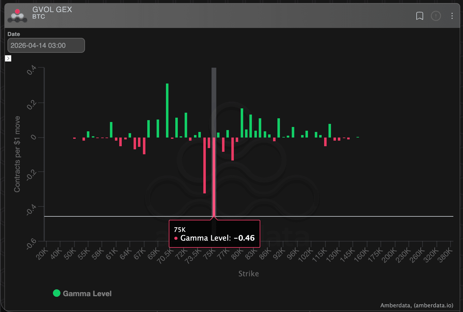 Conversely, if prices turn lower from around $75,000, dealers could short, accelerating the decline, meaning this point can act less like a traditional support or resistance level and more like a "volatility release point."