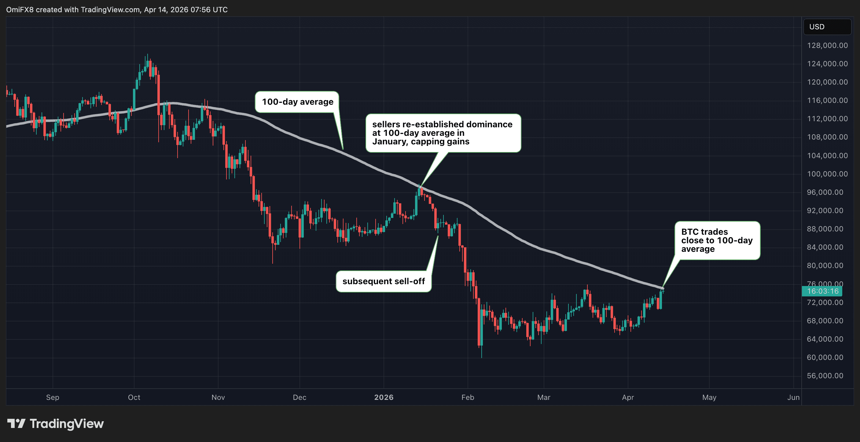Second, $75,000 also aligns with the 100-day moving average, a widely tracked technical indicator that often serves as support or resistance. It previously marked a key resistance zone in January, where sellers re-established their dominance, stopping the rally and paving the way for a deeper drop toward $60,000.