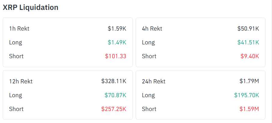 Expectedly, $XRP’s sudden recovery effort alongside the growing interest has had an impact on short positions. In the last 12 hours, total liquidations reached $328.11K, with $70.87K from long positions and $257.25K from shorts.