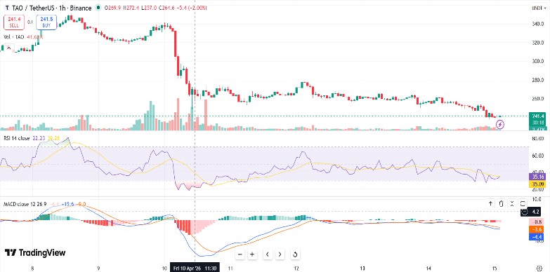 On Tuesday, Bittensor ($TAO) price experienced downward pressure despite the bullish sentiment in the overall crypto market, declining its price below $241 with a drop of over 5%.