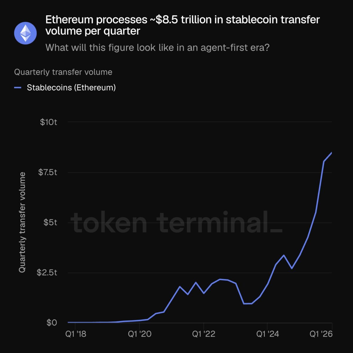 While current engagement weakened, quarterly stablecoin transfer volume continued to rise, now breaching the $8.5 trillion mark, reflecting sustained settlement demand.