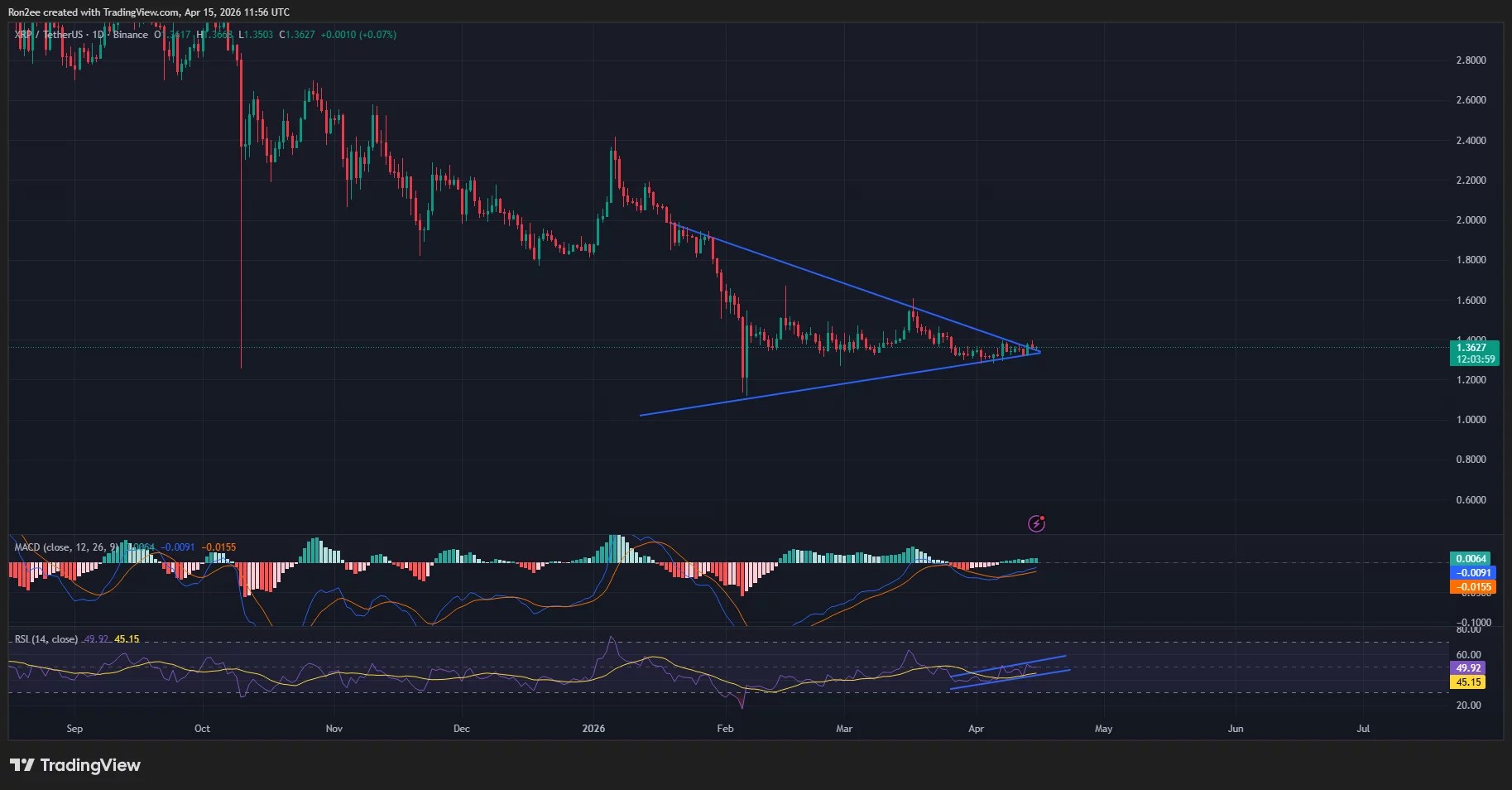 At press time, $XRP price is attempting a bullish breakout from the pattern. Once confirmed, this could trigger a 30% rally as volatility expands from the current apex.