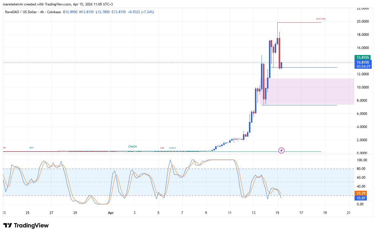 RaveDAO’s [$RAVE] momentum has slowed after a week of steady gains, with price slipping into a controlled correction.