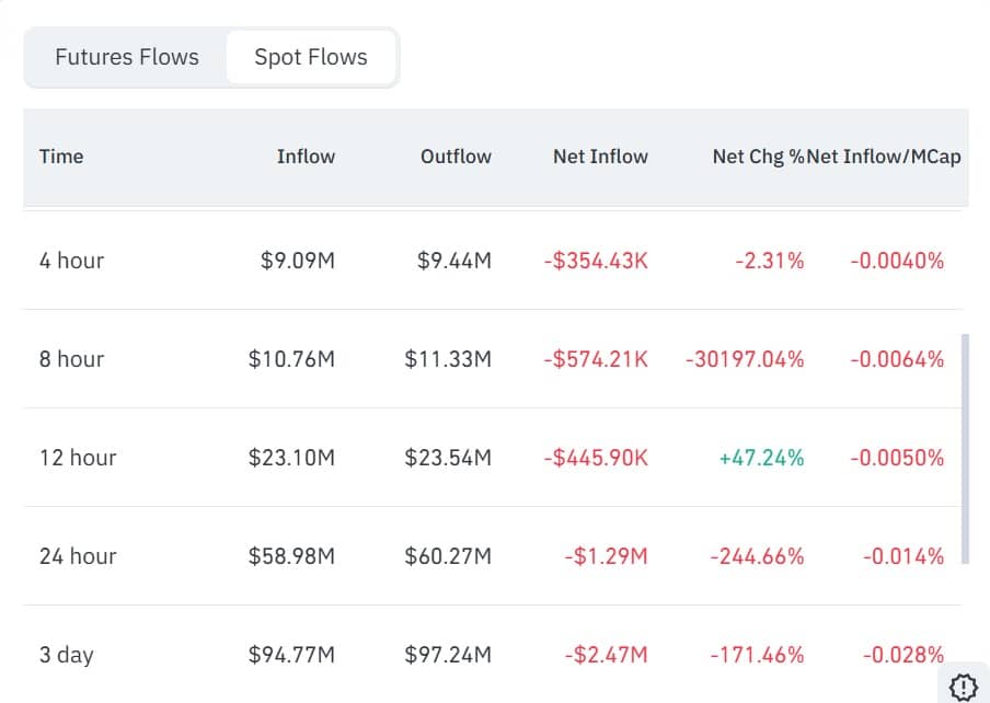 As a result, the altcoin’s Netflow dropped 244.6% to -$1.29 million, a clear sign of aggressive spot accumulation.