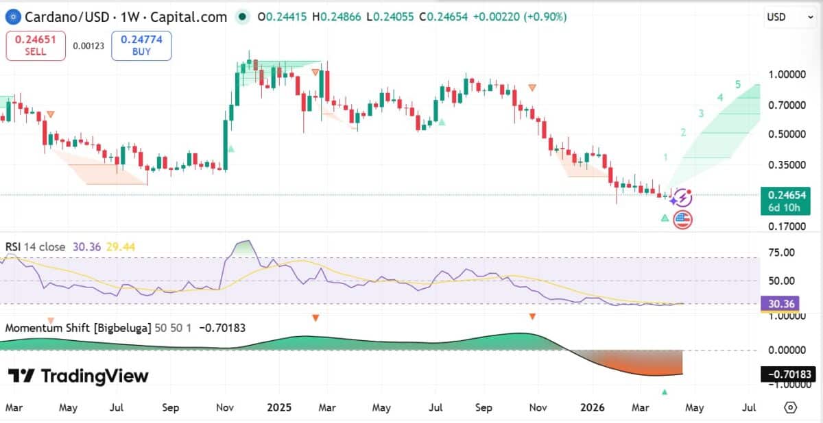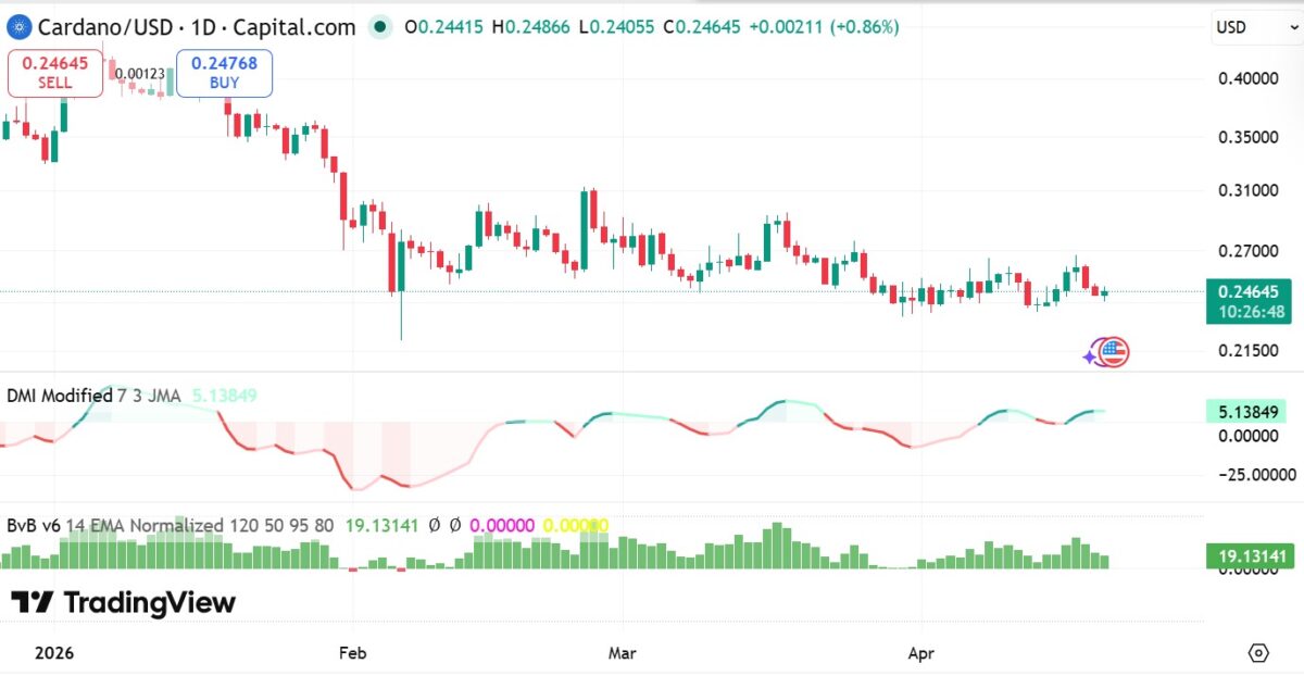 - Cardano hovered around $0.24 after retracing from $0.26 as short-term momentum remains bullish.