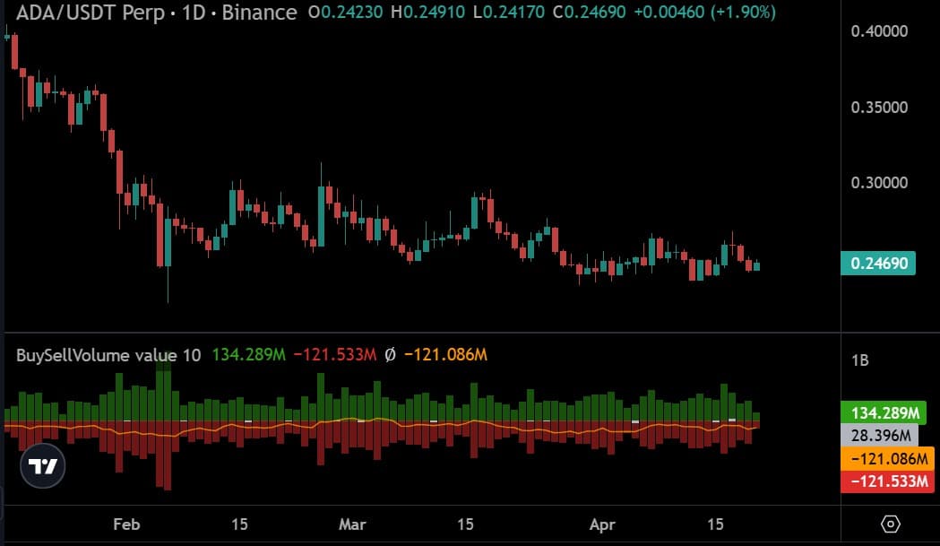 According to CoinGlass data, Cardano’s Spot Netflow has remained negative for three consecutive days. On the 20th of April, $ADA saw $60.27 million in outflow compared to $58.9 million in inflows.
