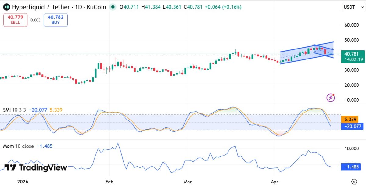 During the broader market pullback, Hyperliquid [$HYPE] fell from $45 to a local low of $40. At press time, it was trading at $41, up 0.6% on the daily chart.