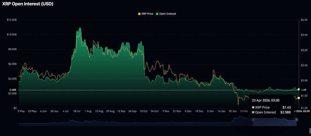 However, retail demand has remained relatively low, with futures Open Interest (OI) steadying at $2.58 billion on Thursday. CoinGlass data shows that OI peaked at $10.94 billion in July, coinciding with $XRP hitting a new record high of $3.66. This underscores the positive impact of persistently rising retail demand on the bullish outlook.