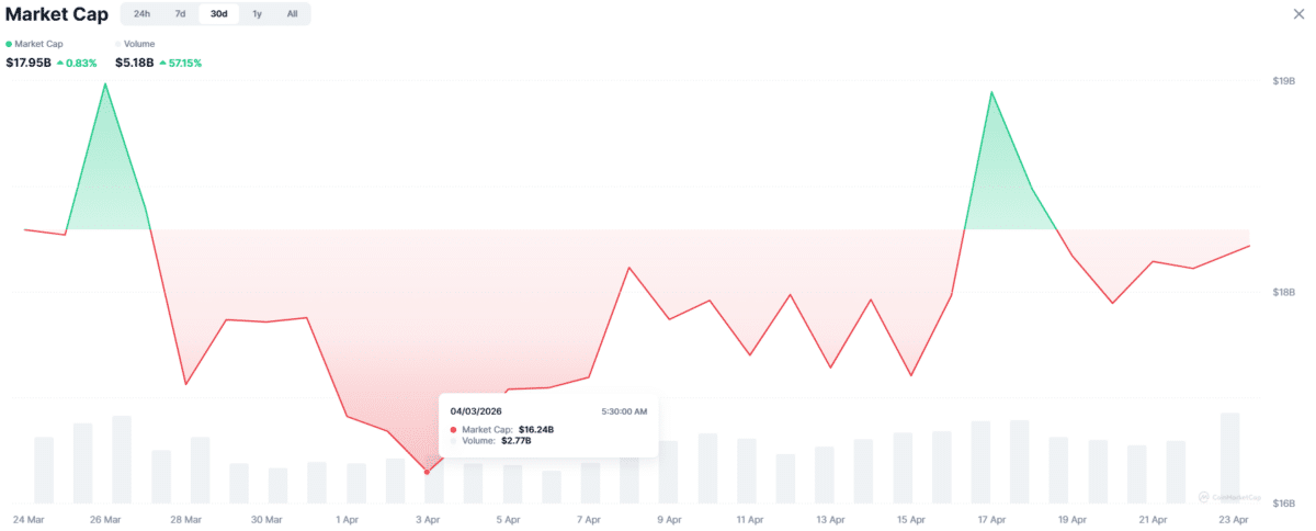 In the first half of this month, the market cap of the sector rose from a low of $16.24 billion to a peak of $19.12 billion. This represented a 17.7% increase.