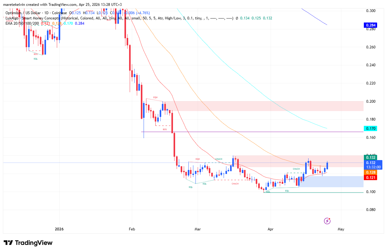 - Optimism held its $0.117 demand zone while continuing to build momentum with steady buyer support.