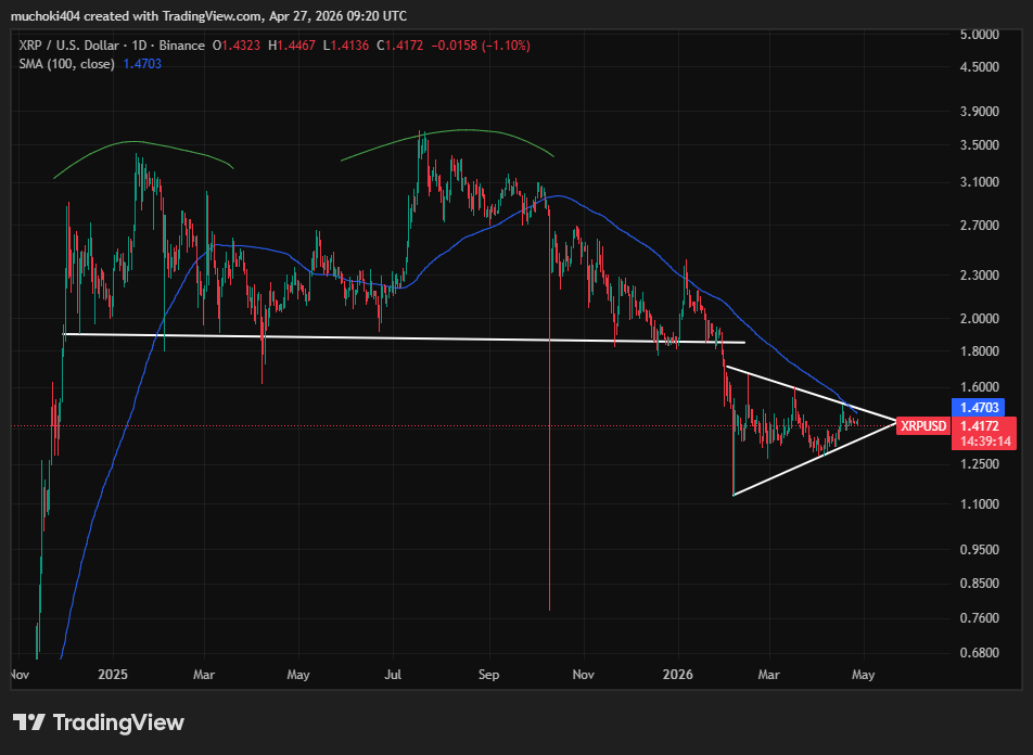 As such, $XRP price could break down from its multi-week ascending support to extend the current corrective sequence, with a potential move below $1.00. Conversely, a confirmed close above the descending resistance trendline would invalidate the bearish structure and signal the start of a fresh bullish leg.