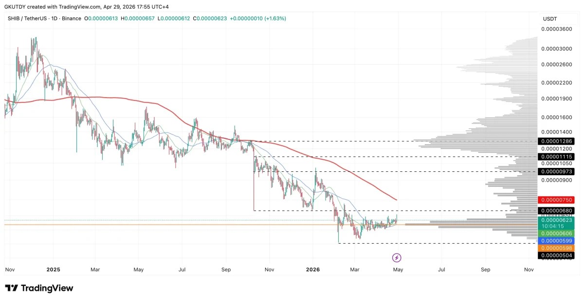 Shiba Inu is attempting a technical recovery after an extended period of price decline. The meme coin has gained approximately 20% since March 2026, climbing to $0.00000628. Analysts are now tracking a potential move toward the 200-day moving average at $0.0000075, a level that carries significant market weight.