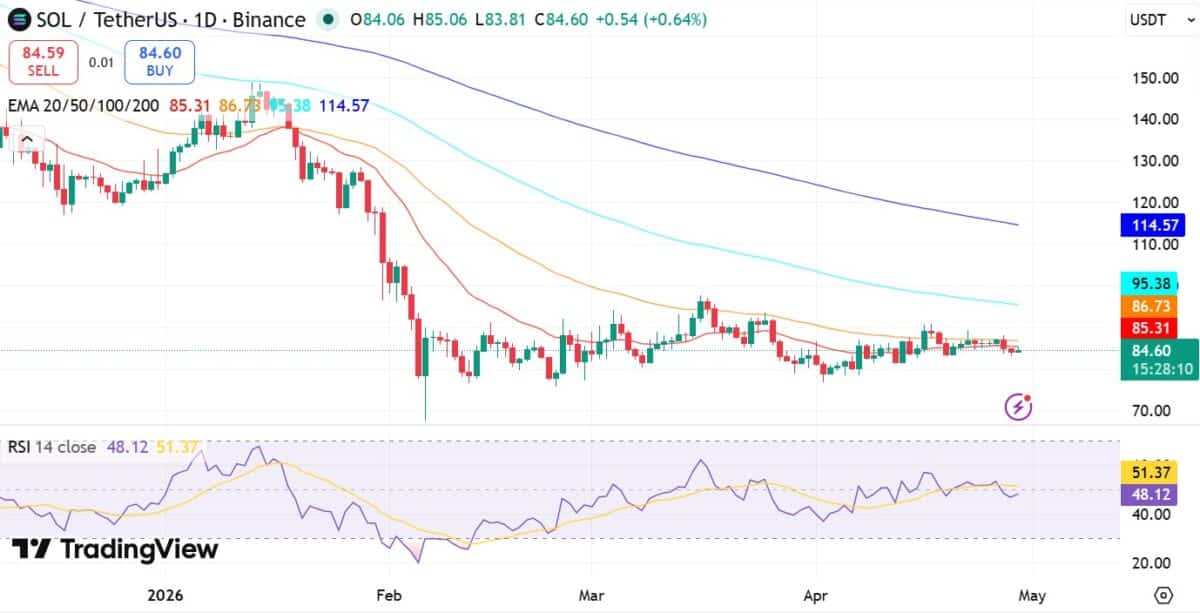 - $SOL remained below $100 and stabilized near $85.