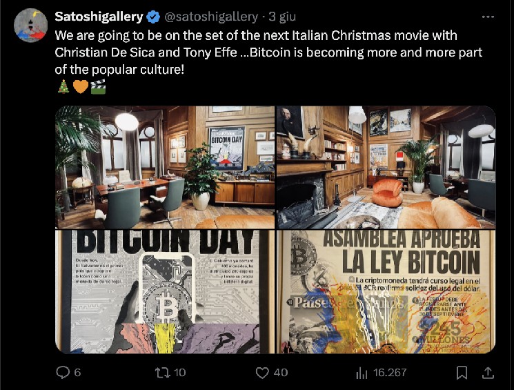 “We will be on the set of the next Italian Christmas movie with Christian De Sica and Tony Effe … Bitcoin is becoming more and more a part of popular culture!”
