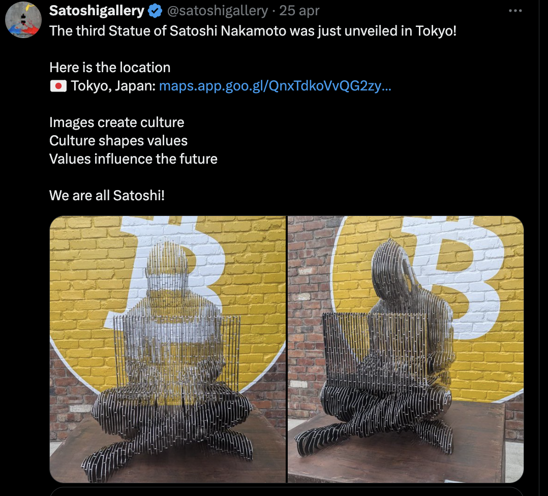 “The third statue of Satoshi Nakamoto has just been unveiled in Tokyo! Here is the location