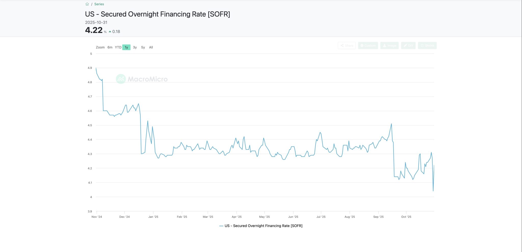 Today, the US Secured Overnight Financing Rate (SOFR) increased by 18 basis points to 4.22%.
