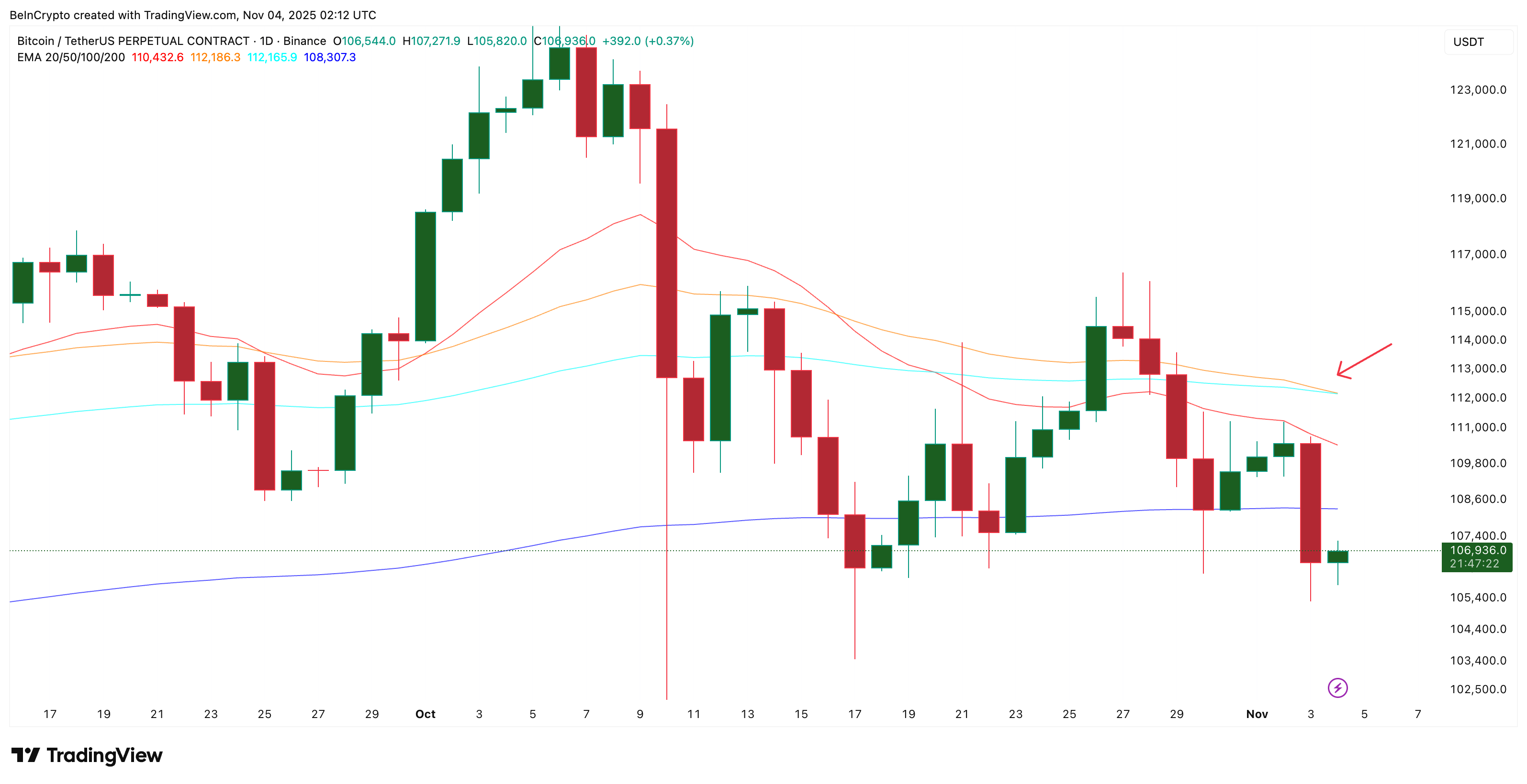However, a strong daily close above $111,400 would flip the short-term structure bullish again. That level has acted as resistance since October 30. Breaking above it would invalidate the bearish crossover’s effect and open a path toward the $113,300 zone. However, such a significant Bitcoin price upmove would also invalidate the NUPL-based bottoming theory, at least for now.