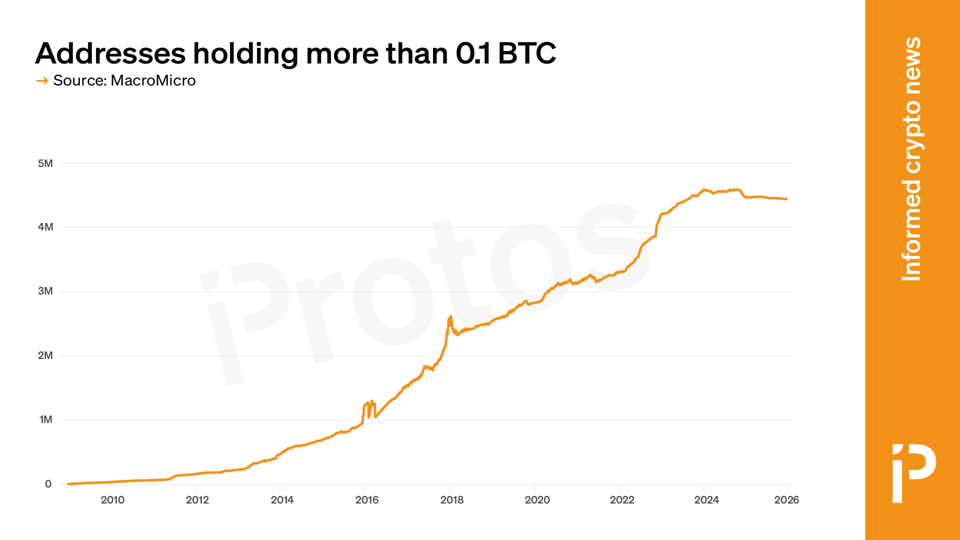 Of course, it’s impossible to determine whether the actual number of people holding less than 0.1 BTC has declined or not.