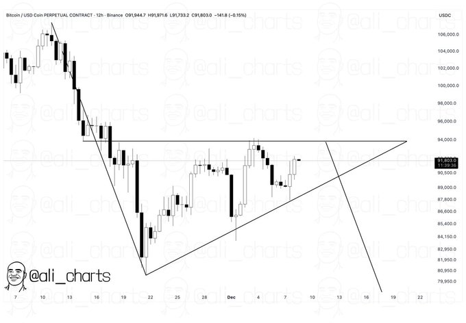 In a December 9 X post, he noted that the pattern emerged following Bitcoin’s sharp pullback from recent highs, with repeated failures to break past the mid-$90,000 resistance.