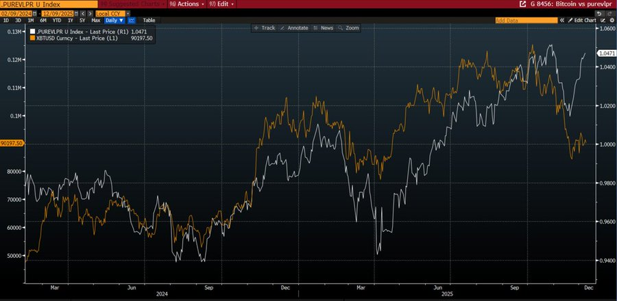 He said this creates a mispricing and could pull Bitcoin higher. He also argued that the recent drop from $115,000 to $80,000 happened too fast, and that broader risk-on appetite is returning.