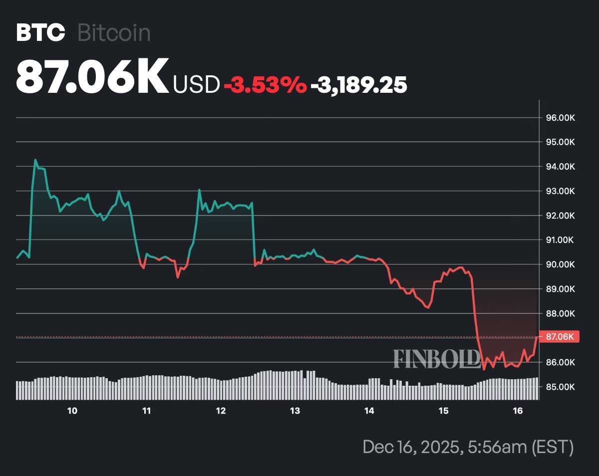 At the time of publication, Bitcoin was trading at $87,060, down 2.85% over the past 24 hours, and a further 3.53% in the previous week. Despite the short-term pullback, on-chain positioning indicates that sharks continued to absorb supply rather than distribute into price weakness.
