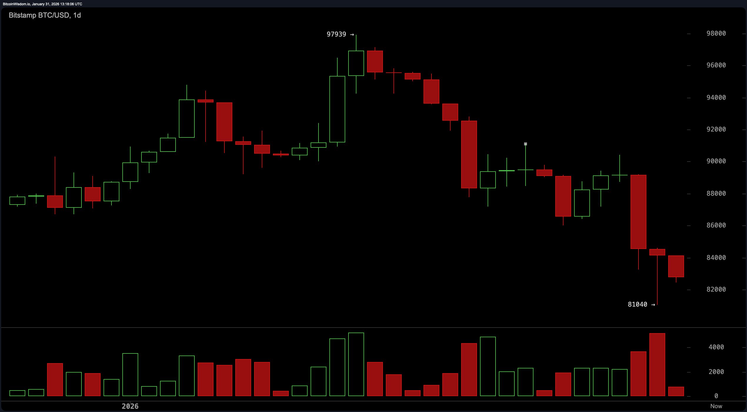 Bitcoin entered Saturday, Jan. 31, 2026, with a bruised ego and a market trying to find its footing. Priced at $82,699 with a market capitalization of $1.65 trillion, bitcoin floated within a 24-hour trading band of $81,953 to $84,367. Its daily volume printed a notable $53.64 billion—ample liquidity, but not enough conviction to shake off the bearish overtones. From multiple chart intervals and momentum signals, it’s clear: Bitcoin is nursing its wounds, and the road to redemption may be anything but linear.
