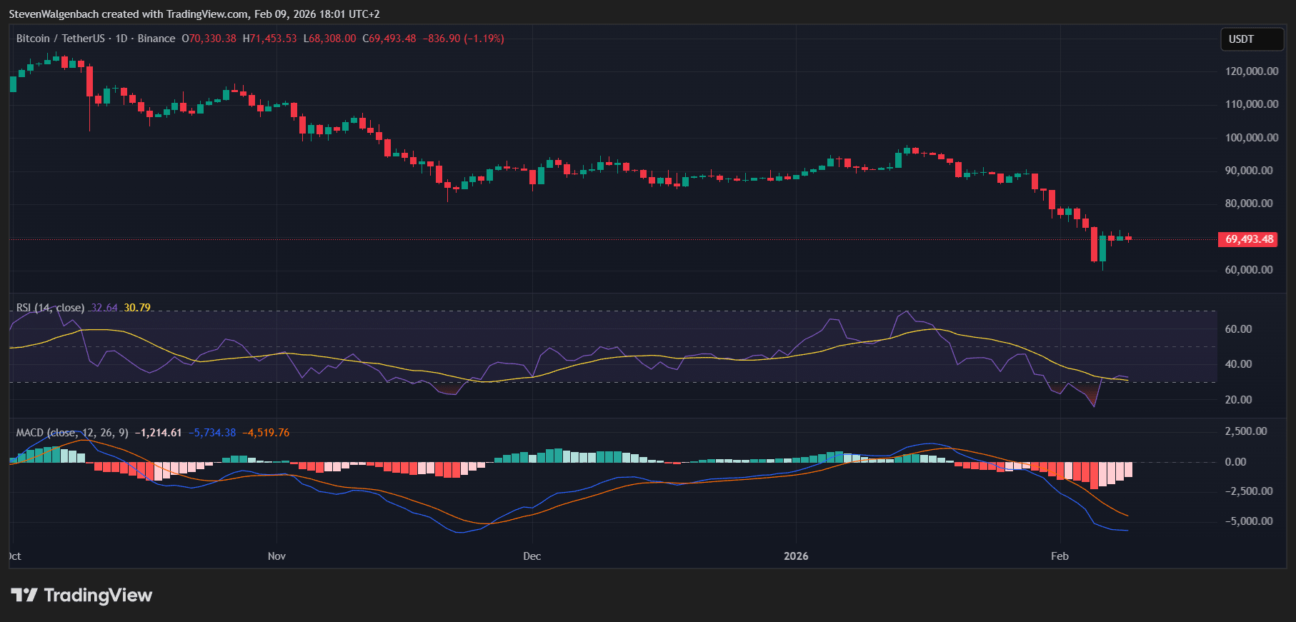On the downside, the $67,850 support level remains the first important defense for bulls. If the price breaks below this region, the next support zones at $66,668 and $60,326 could come into focus. A sustained move beneath these levels would likely confirm continued bearish dominance and extend the broader corrective structure.