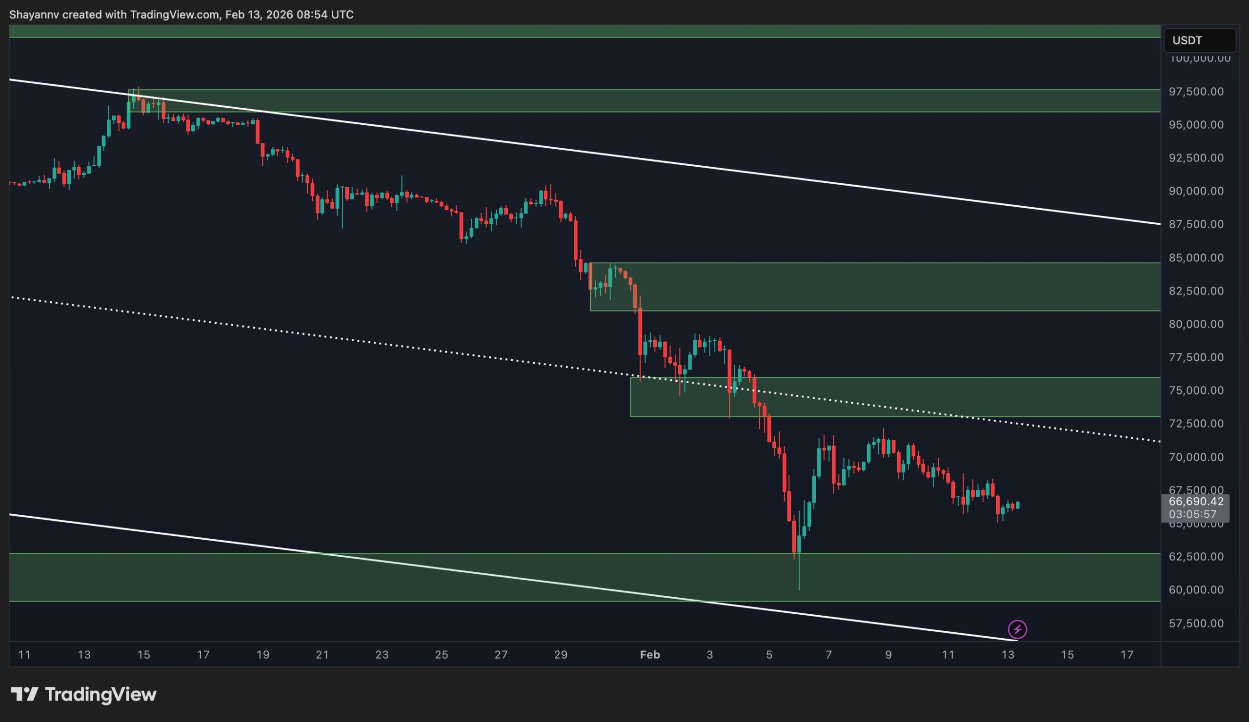 A decisive reclaim of $70K, accompanied by a breakout above the channel’s midpoint, would be required to shift momentum and initiate a more sustainable bullish leg. Otherwise, Bitcoin is likely to remain confined within the $60K–$70K range until fresh demand or supply triggers a directional expansion.