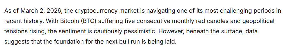 After swiftly assessing the recent happenings in the cryptocurrency market, the AI opined that early 2026 is ‘one of its most challenging periods in recent history.’