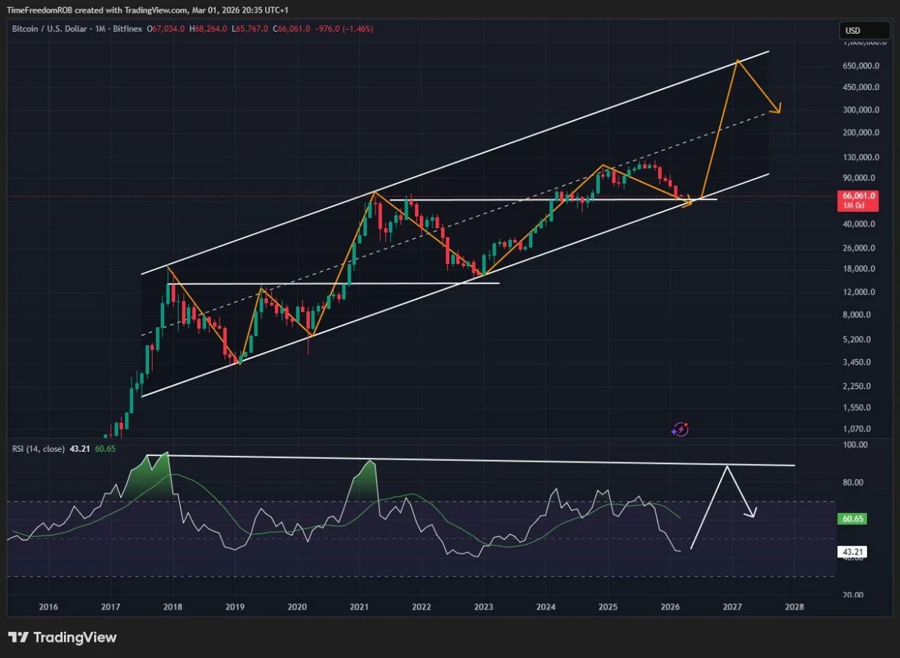 Bitcoin Monthly W Pattern Channel Chart. Source: TimeFreedomROB on X
