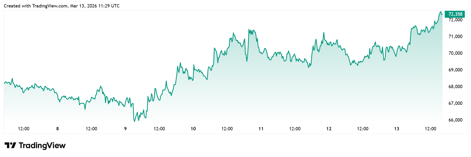 Despite the chaos in global markets, cryptocurrencies have held up better than stocks and bonds this month. Bitcoin has climbed nearly 8% since the first US strikes on Iran in late February, even as equity markets struggle under the weight of high oil prices. The digital currency appears to be finding a floor near $72,000.