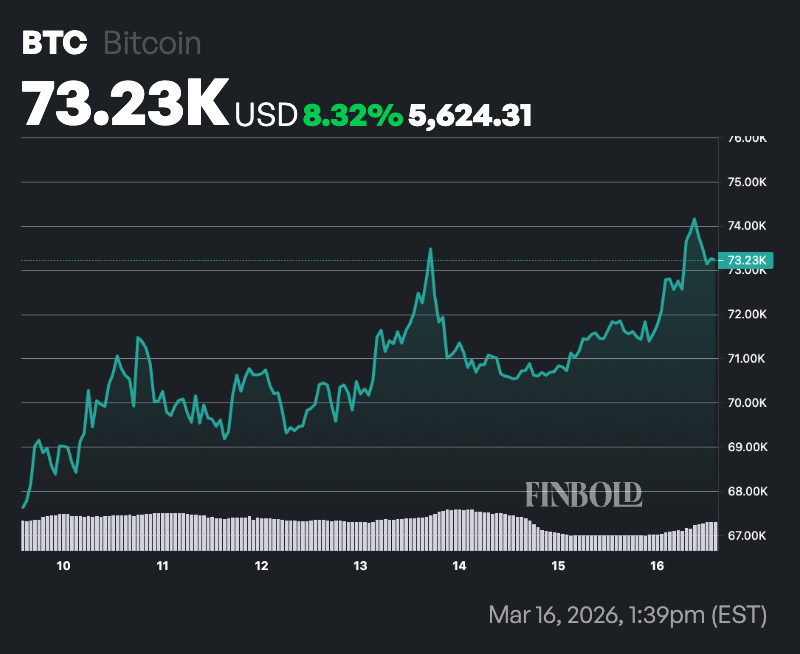 By press time, Bitcoin was trading at $73,236, having rallied almost 2% in the past 24 hours. On the weekly timeline, $BTC is up over 8%.