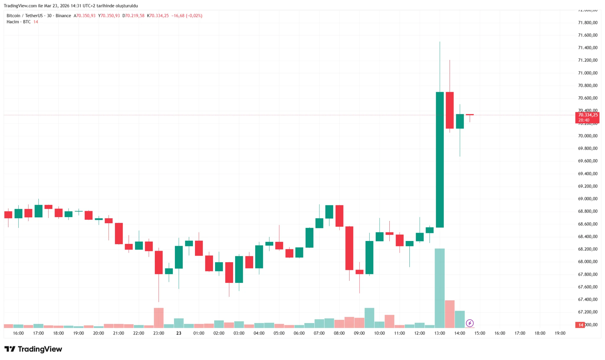 The market continued to react to statements from the US and Iran. Bitcoin, which rose following Trump’s remarks, gave back some of its gains after Iran denied the talks, and volatility increased. Bitcoin lost some of its intraday gains and fell to around $70,000. Its gains over the last 24 hours remained at approximately 2.5%.